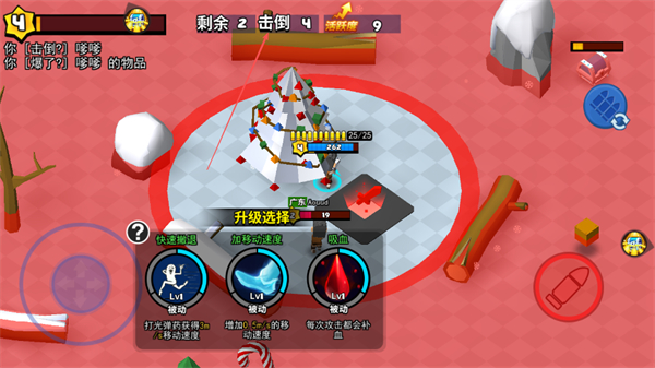 3、战斗中选择快速撤退,位移连射,吸血等升级技能,增强战斗能力,应对剩余敌人。
