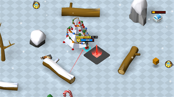 1、在雪地场景中,靠近发光区域收集金币,积累资源,提升自身战力。
