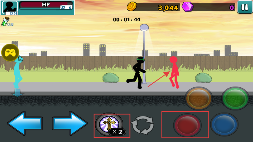 3、游戏中利用左侧的左右方向按钮控制角色移动,在场景中探索前进,寻找敌人进行战斗。