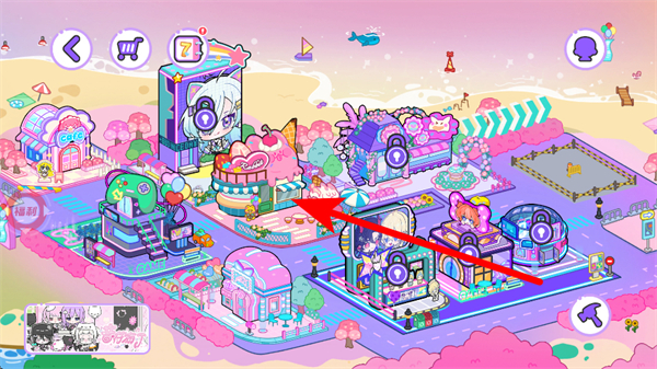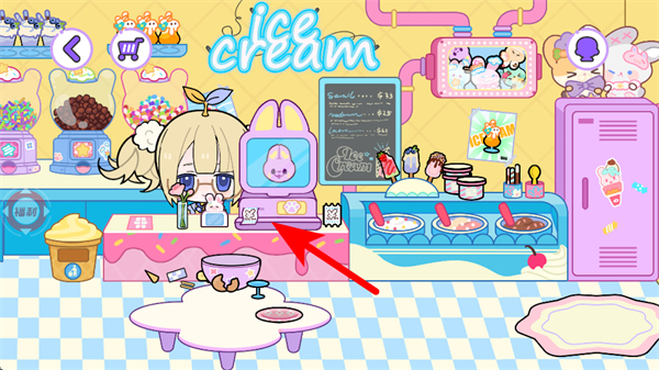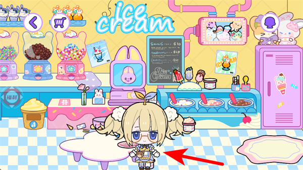 2、在主场景中可点击不同建筑如冰淇淋店进入相应场景。