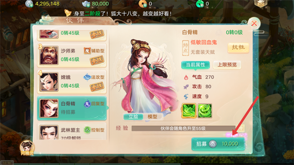 3、找到待招募的伙伴,消耗对应资源点击【招募】,获取新伙伴。