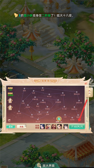 3、在周天星斗星阵界面,选择出战阵容后,点击【开始挑战】,进入关卡战斗。