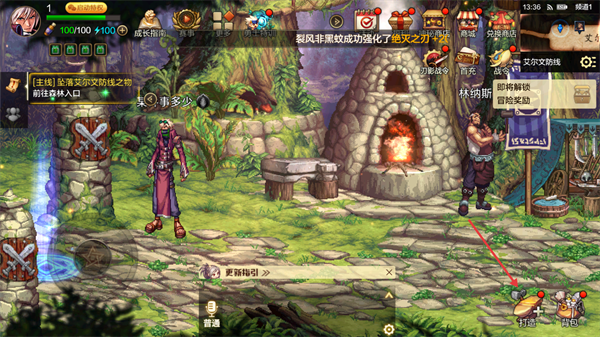 *玩家登录游戏来到主界面后,点击右侧下方列表中的背包选项。