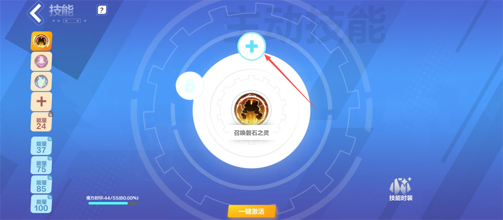 1、获得新技能后,点击右上角加号图标进行装备,能大幅提升战斗力呢。