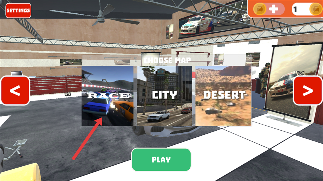 2、在地图选择界面,可选择【RACE】等赛道地图,挑选后即可驾驶奔驰开启竞速挑战。
