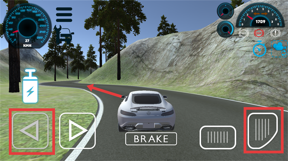 4、遇到弯道时,点击左侧方向键调整行驶方向,同时控制油门,顺利通过弯道,体验奔驰的操控感。