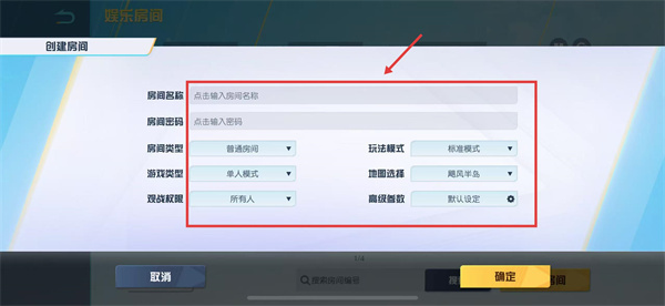 3、设置房间名称、房间密码、玩法模式、地图选择等参数,可根据需求个性化配置。