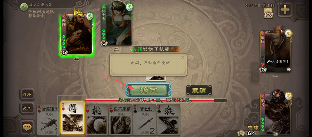 4、敌人对你出杀时,及时选出【闪】并点击【确定】,这样就能躲避伤害,保证自己能继续作战呀。
