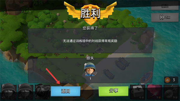 4、训练场战斗胜利后,可点击【返回】,回到基地。
