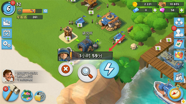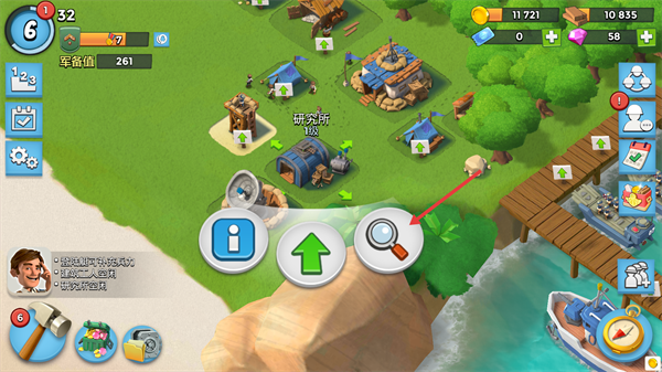 1、点击【研究所】的放大镜图标,进入升级项目选择界面。