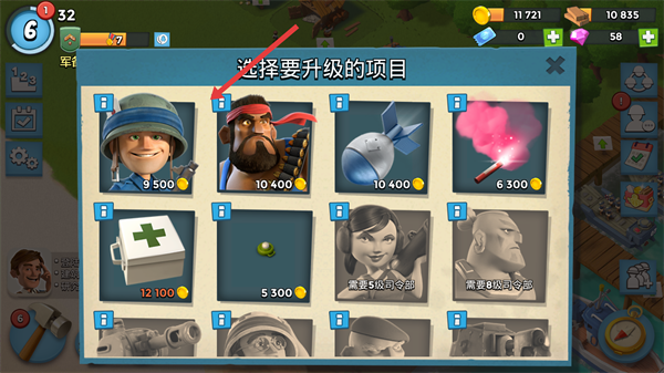 2、选择升级的兵种,查看升级所需资源。