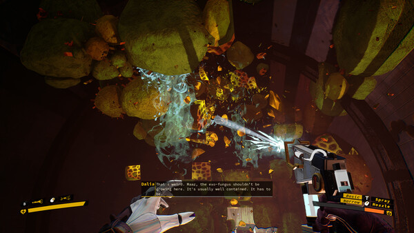游戏包含三个不同任务类型的关卡供玩家探索,需主动搜寻并收割爆炸性/电气性等特殊真菌。这些菌类不仅会灼烧、电击或限制行动,其果实还能用于合成火焰喷射剂、导电喷雾等战斗工具,甚至通过电力泡沫重新激活设备开启新通路。