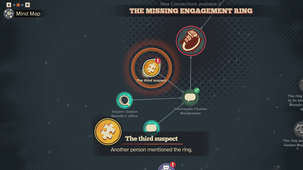 思维导图支持多分支关联,将古董怀表与口红指纹等无关线索结合,可能意外揭示隐藏动机,共包含27种非常规推理路径。