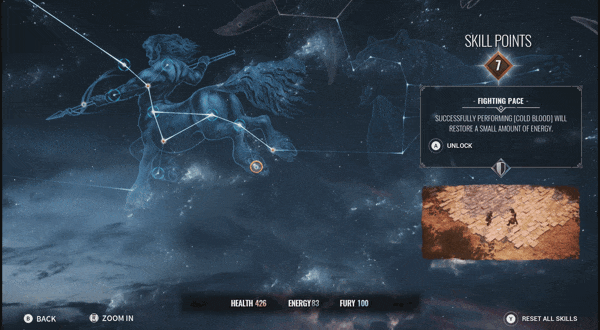 机制: 阿基里斯每秒损失 15 点生命值,但使用冥界之视 (HV) 可以暂时停止生命值下降。你可以随时使用吸魂,每次击杀恢复 300 点生命值。无法使用腰带或背包中的物品,在 HV 中,你只能使用吸魂来恢复生命值。