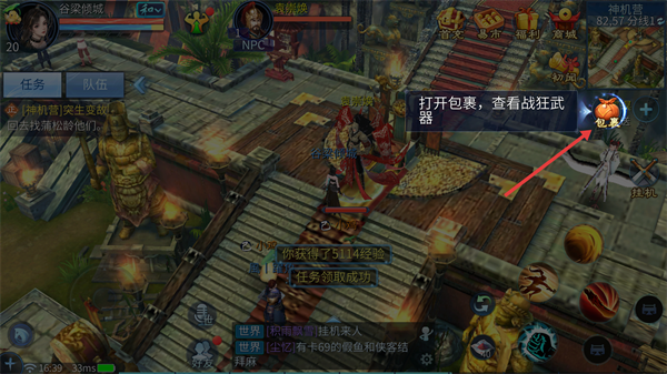 1、在游戏界面点击右侧【包裹】选项,进入包裹界面。