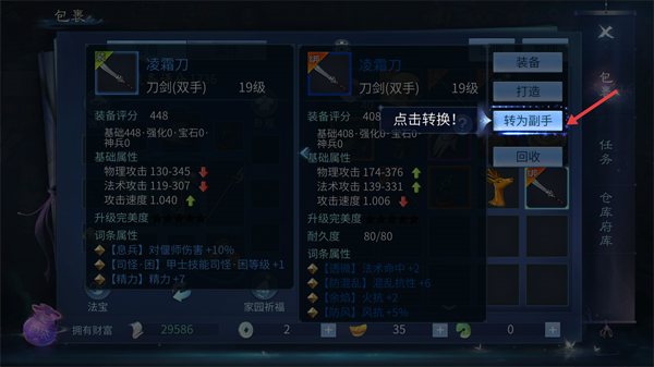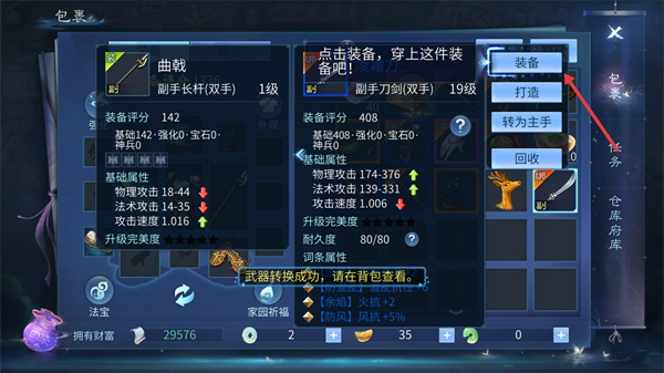 4、转换成功后,点击【装备】按钮,穿上转换后的副手武器。