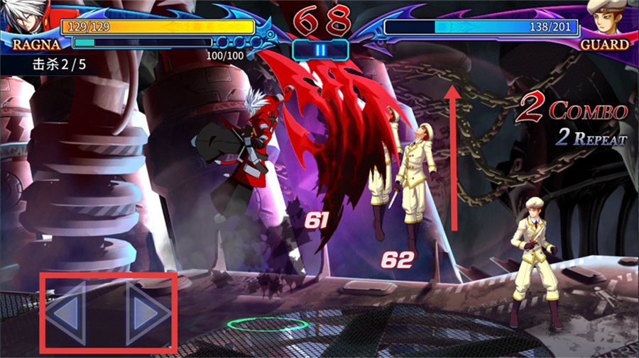 3、面对敌方守卫时,在屏幕右侧向上再向斜下方滑动,即可打出高额伤害的组合技呀。
