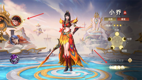 2、在创建角色界面,选择喜欢的英雄,输入名字后点击【创建角色】。