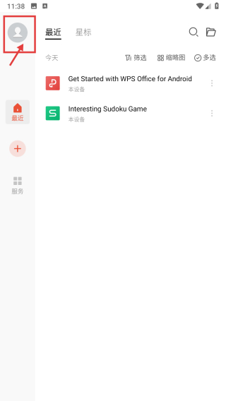 1、打开WPS Office APP,点击左上角个人头像,进入个人中心页面。