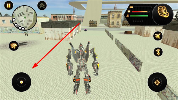 1、左下角摇杆可操控角色移动,无论是机器人形态在地面行走,还是战机形态在空中飞行,通过摇杆都能灵活调整移动方向。