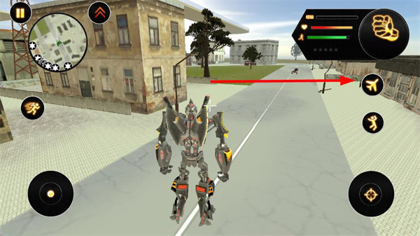 2、点击右侧飞机图标,可在机器人与战机形态间切换,战机形态适合快速移动与远程攻击,机器人形态适合近距离格斗与场景互动。