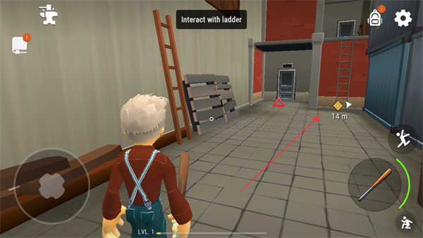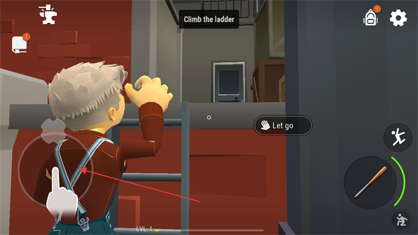 3、按照指引爬上梯子,到达上层区域推进流程。