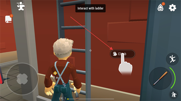 2、点击Climb按钮,与梯子交互开始攀爬。