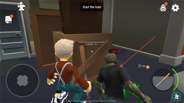 4、靠近僵尸,使用工具攻击僵尸,同时向列车启动点前进。