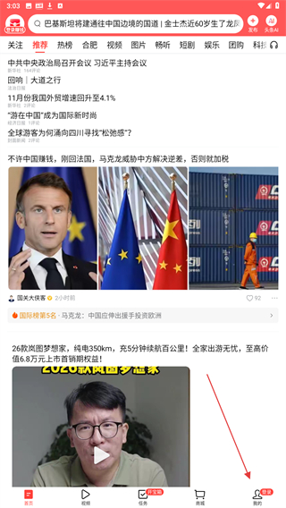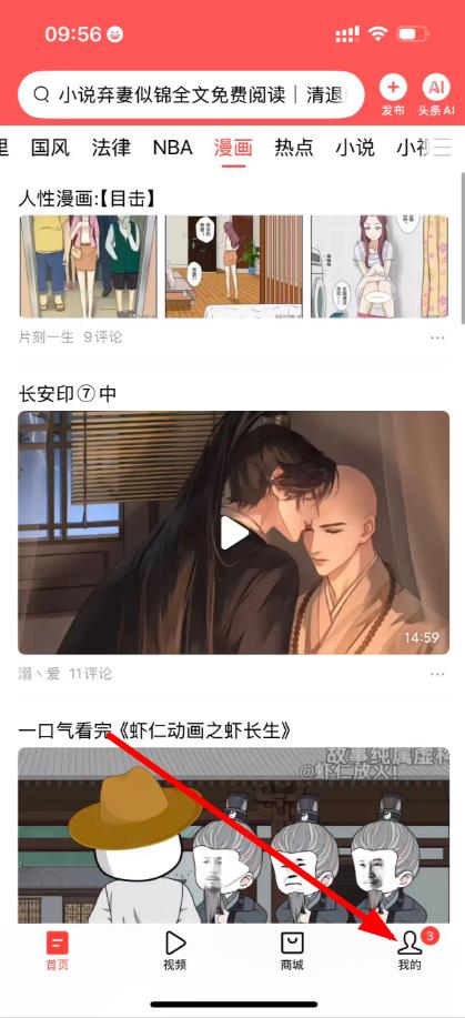 1、启动今日头条APP,进入时点击底部我的按钮。