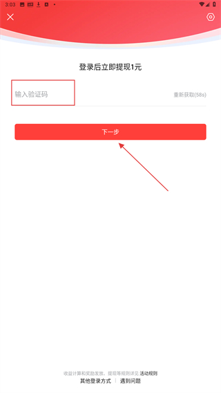 3、将收到的验证码输入其中后,点击下一步的按钮即可。