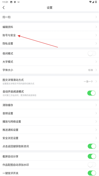 3、进入设置的页面内,点击下方账号与安全的按钮。