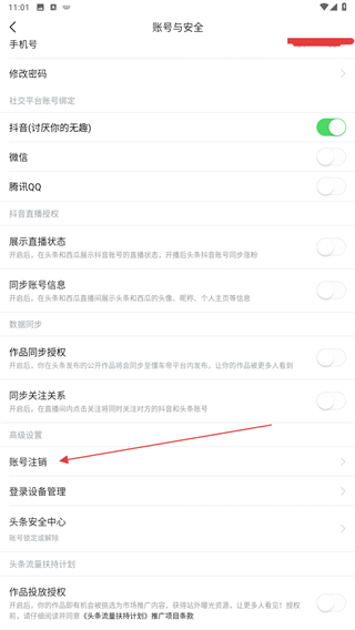 4、在账号与安全的页面内,点击下方账号注销的按钮即可。