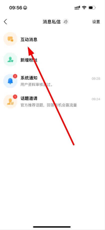 3、进入消息私信页面后,点击互动消息,即可查看相关互动消息内容。