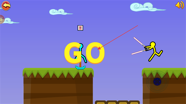 1、等GO提示出现,准备与对手展开对决,操控火柴人移动至战斗区域。