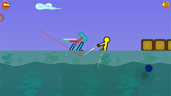 4、将对手击入水中,使其血量耗尽,完成本场对决的胜利。