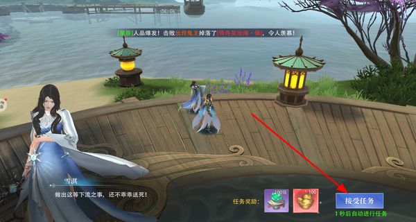 2、在场景中找到NPC,点击接受任务按钮,获取对应的任务,完成任务可获得资源类奖励。