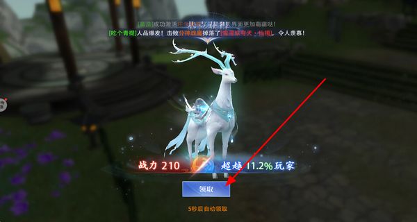 4、在任务奖励界面点击领取按钮,获取仙鹿类奖励,这类奖励可提升角色移动速度,助力后续冒险。