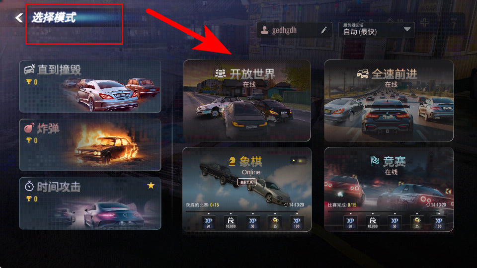 2、在选择模式页面,可挑选喜欢的玩法,比如点击开放世界模式进入游戏。