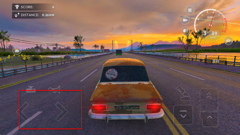 4、利用左侧的左右箭头按钮来控制车辆的行驶方向,躲避道路上的其他车辆并保持行驶。