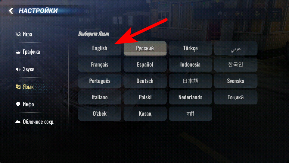 2、在设置页面左侧菜单栏,选择Язык选项,进入语言选择界面。