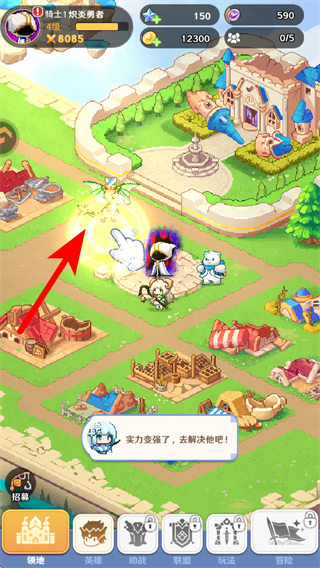 4、英雄升级完成后返回城堡场景,根据提示挑战更强的怪物,借助升级后的英雄战力更高效地击败敌人,获取更多资源以推进游戏进度。