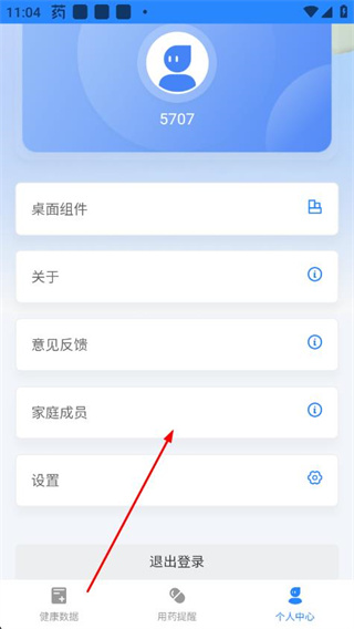 1、在健康教练的个人中心页面,点击家庭成员选项。