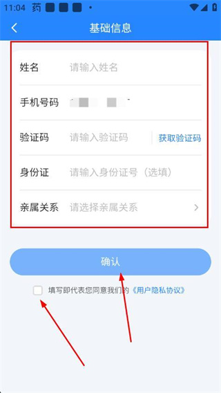 3、在基础信息页面填写成员信息,勾选协议后点击确认完成添加。