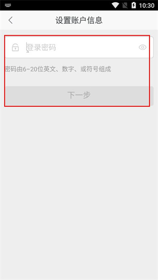 3、在设置账户信息页面,设置登录密码后点击下一步完成注册。