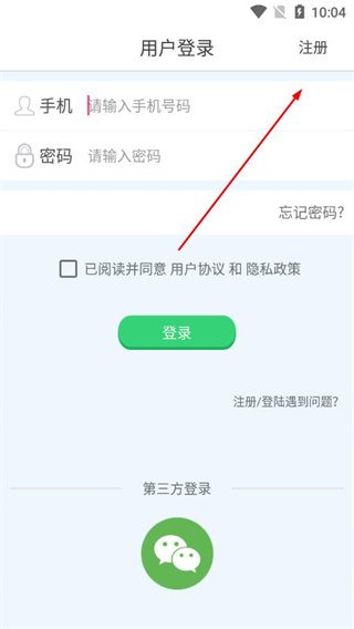 1、在创意跑步的用户登录页面,点击右上角的注册选项。