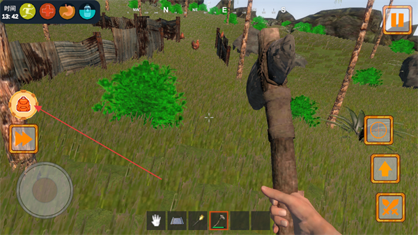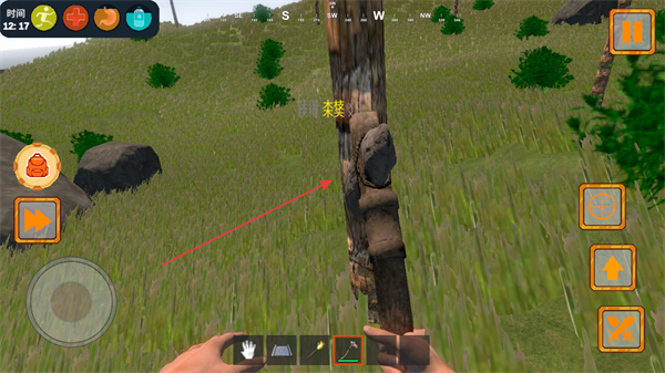 1、移动角色靠近树木,使用工具采集木柴等资源,积累生存材料。