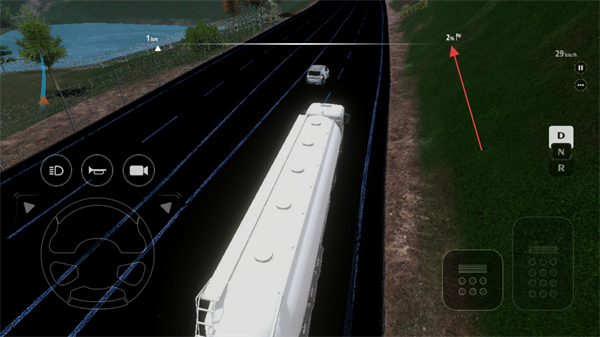 2、在驾驶界面中,通过方向盘控件操控车辆的行驶方向,选择D档保持车辆前进状态,保障运输过程的安全顺畅。