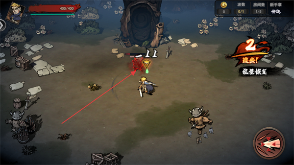 2、自动攻击敌人,积累连击层数如连击2,提升输出伤害。