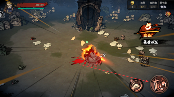 4、击败敌人后收集掉落物,继续探索场景、挑战更多敌人,推进关卡进度。