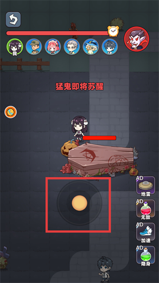2、进入关卡后,看到【猛鬼即将苏醒】的提示,点击界面中的按钮,完成前期的准备操作。